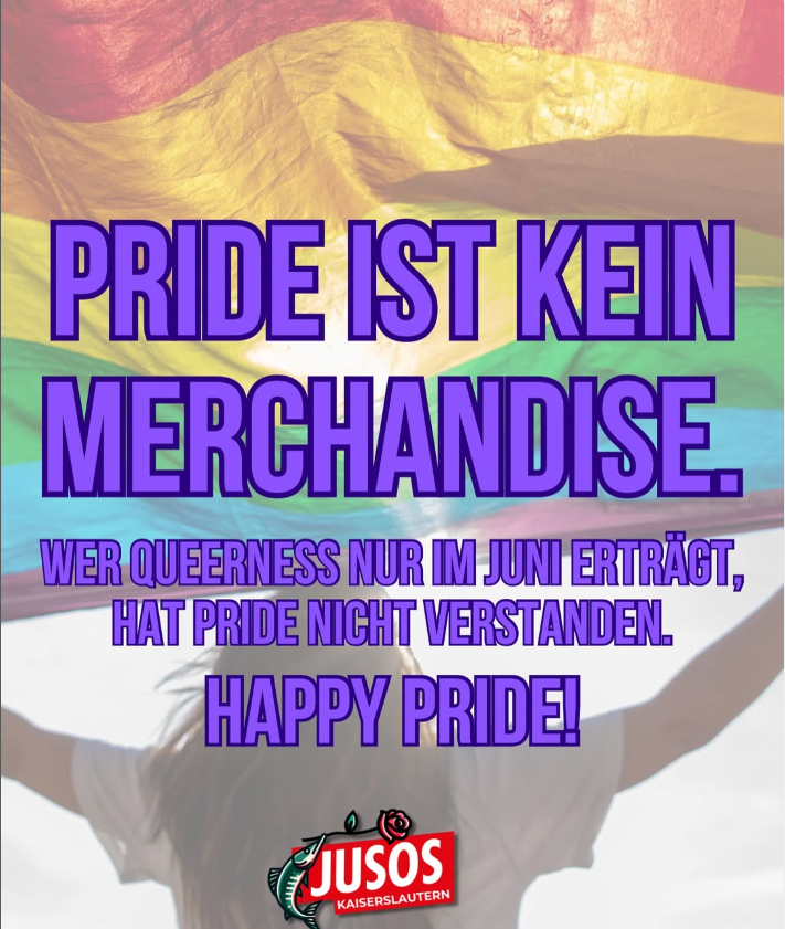 #PrideIsPolitical #JusosKaiserslautern #HappyPride #SolidarischStattSymbolisch #FürAlleNichtFürWenige #PrideMonth2025 #QueerUndLaut #pridejedentag